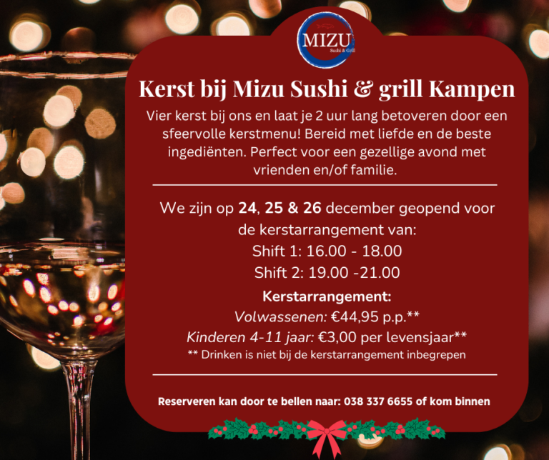 **Restanten als gevolgd van verspilling worden extra in rekening gebracht: €1,00 per sushi en €2,00 per warm gerecht